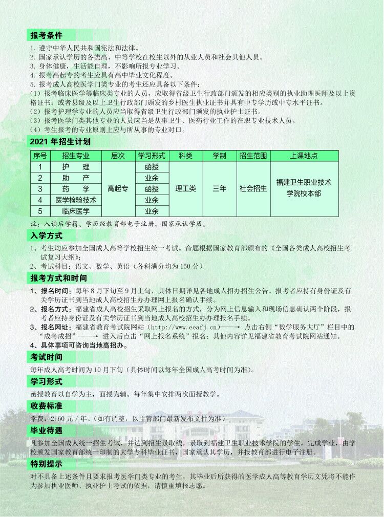 福建卫生职业技术学院函授