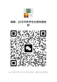 1.参加答辩的同学,请扫下方二维码加入中药学专业答辩通知群,群昵称改为“姓名-学习中心”。务必及时关注该群内消息(腾讯会议号等信息会在群内通知)。