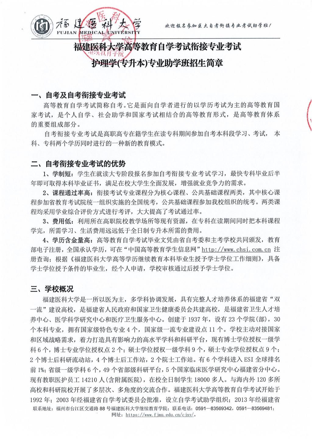 福建医科大学高等教育自学考试衔接专业考试护理学(专升本)专业2025春助学班招生简章