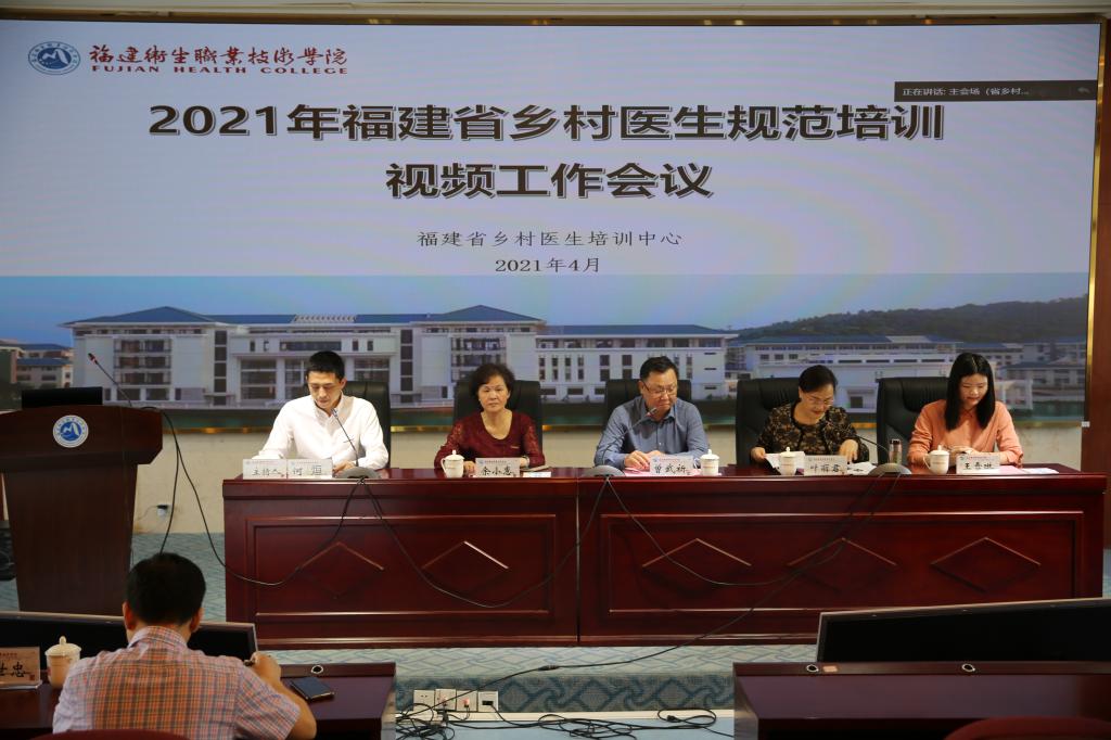 4月23日,2021年福建省乡村医生规范培训视频工作会议在我校顺利召开。此次会议由福建卫生职业技术学院(省乡村医生培训中心)主办。福建卫生职业技术学院党委书记曾武祈、福建省卫健委科教处二级调研员叶丽君、福建医科大学成人教育学院院长余小惠、福建省卫生科教协会干部王雪琳以及各设区市乡医培训工作负责同志共189人参加了本次会议。会议由继续教育学院何烜副院长主持。