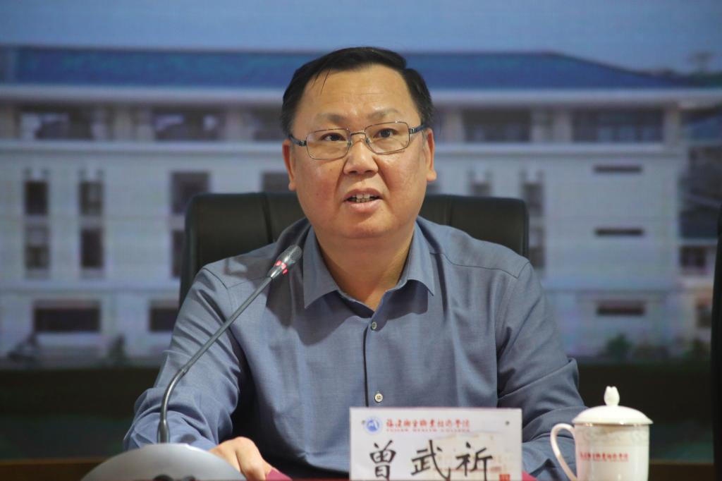 会上,曾武祈首先欢迎莅临本次会议的领导、同志,并表示我校作为全省乡村医生培训任务的承接单位,已经连续承担了16年,深感责任重大、使命光荣、任务艰巨,一定要认真办好今年的乡村医生培训工作,让广大乡村医生学到更多的医学知识,掌握更多的诊疗方法,不断提高医疗技术水平和服务能力,进一步夯实基层卫生健康人才队伍建设,促进健康乡村建设,助力乡村振兴发挥应有作用。