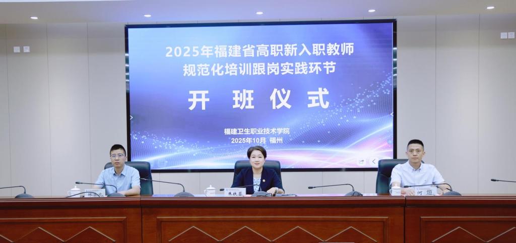 近日,受福建技术师范学院委托,由我校承办的2025年福建省高职新入职教师规范化培训跟岗实践(2班)开班仪式顺利举行。副校长朱扶蓉出席仪式并致辞,各学院相关负责人及指导教师参加现场会议。