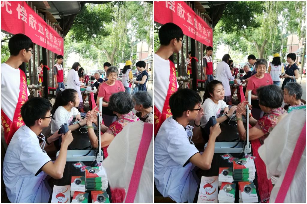 本次活动吸引了许多社区居民的积极参与。党员教师向社区居民们认真讲解了高血脂防治知识和献血的各种益处,让居民们充分认识到献血不但有益身心健康,还能为社会做贡献。与此同时,同学们热情而专业地为居民们测血型、量血压,并嘱咐高血压的居民们应该注意的事项。洪山桥社区居民为老师、同学们的专业解答、周到服务表示赞许。