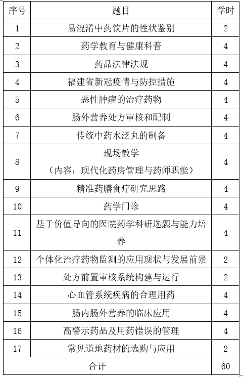 2022年福建省执业药师继续教育培训班课程安排