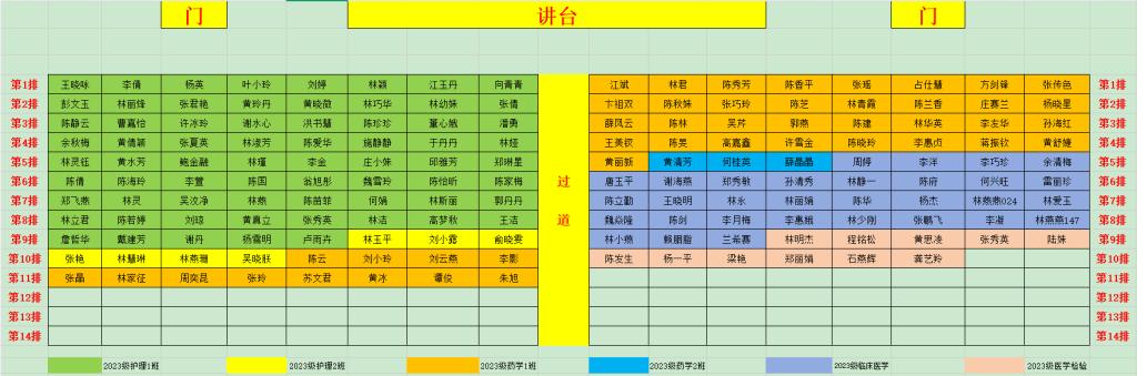 3.每位同学在指定位置就座(贴有姓名贴)。
