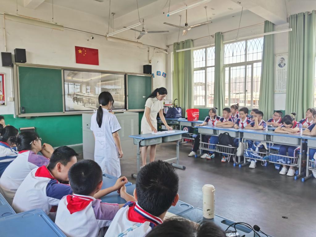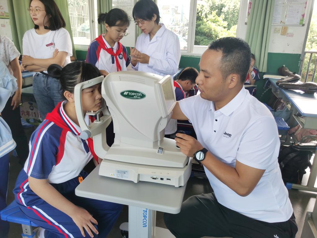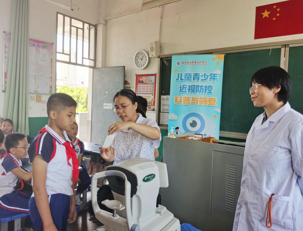 医工学院的王珊珊教授则带领眼视光专业老师为孩子们进行近视筛查。老师们携带专业设备,逐一为孩子们进行验光,并向每个孩子耐心讲解验光结果,告诉他们良好的视力对于提高学习效率至关重要,呼吁家长和孩子们重视青少年近视问题,做到早预防、早发现、早干预。