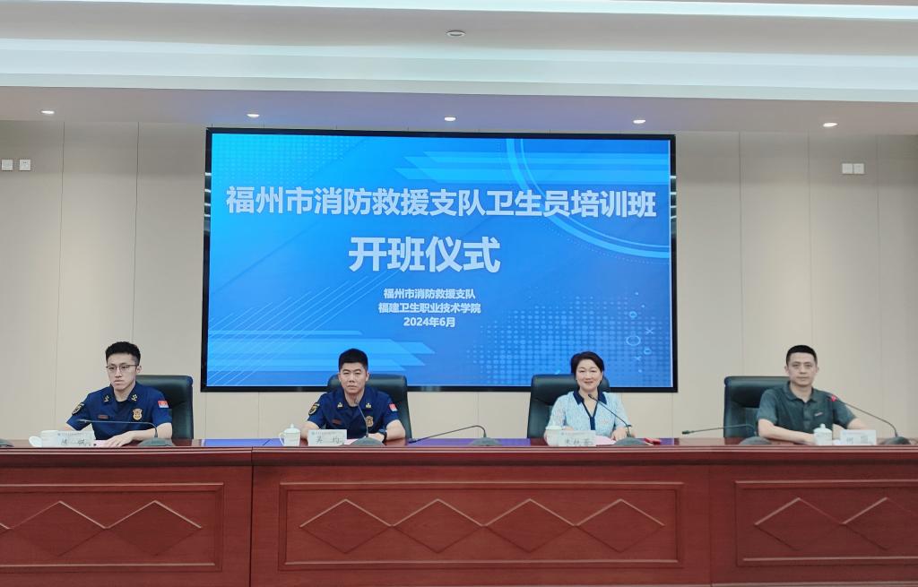 6月17日,福州市消防救援支队卫生员培训班开班仪式在我校举行。福州消防救援支队后装处处长吴均、学校副校长朱扶蓉出席仪式并讲话。学校相关部门负责人、福州消防救援支队相关人员及46名培训学员参加仪式。开班仪式由继续教育学院副院长何烜主持。
