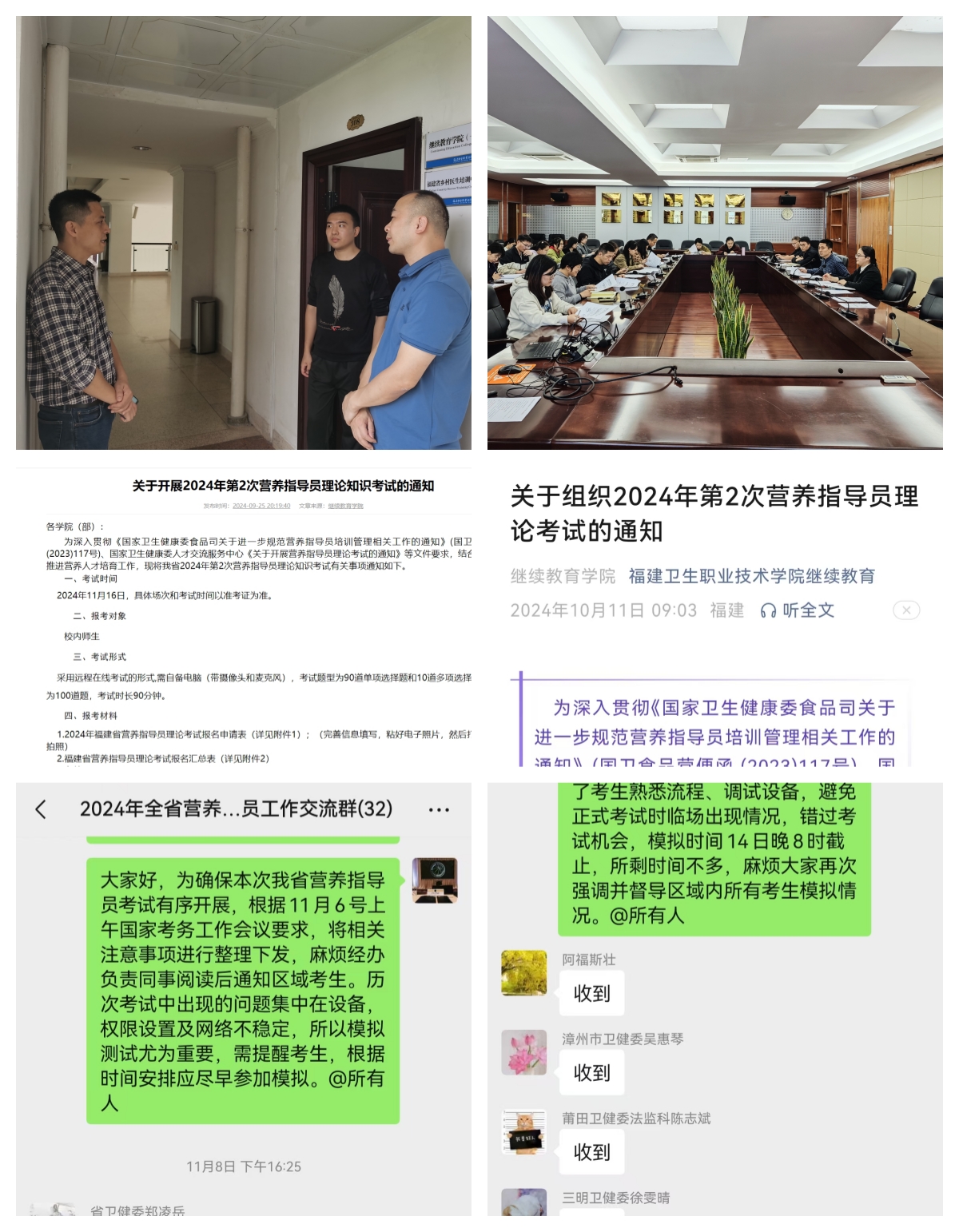 福建省卫健委高度重视本次工作,多次召开会议,共同研讨营养指导员培训和考试报名工作思路,通过层层动员、级级推进,不断挖掘潜在学员;学校成立报名工作小组,负责协调考务各类事宜,与各设区市卫健委具体负责人建立信息互通工作机制,确保各项工作部署到位,为工作顺利开展打下良好基础。