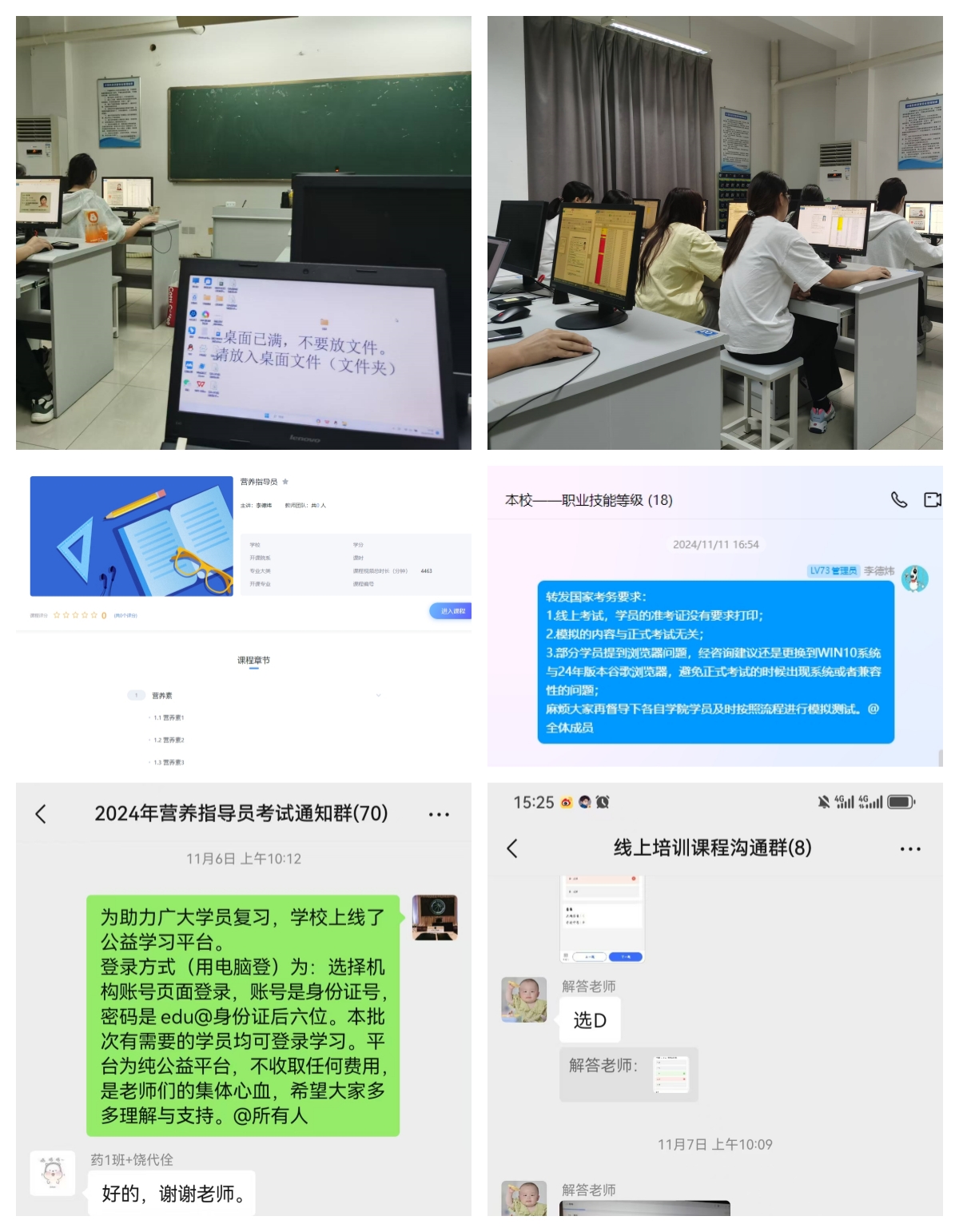 为确保服务到位,报名工作小组安排专人、设置专线为考生提供咨询答疑服务。为确保所有考生顺利参考,组织多名师生加班加点审核材料,同时,为了助力广大考生备考复习,依托超星平台开展免费线上培训,并成立问题答疑工作社群,为广大考生提供高质量服务。