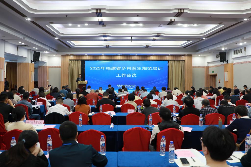 3月25日,2025年福建省乡村医生规范培训工作会议在福州顺利召开。此次会议由福建卫生职业技术学院(福建省乡村医生培训中心)主办,福建省卫健委科教处干事王雪琳、福建卫生职业技术学院副校长朱扶蓉、福建医科大学继续教育学院院长黄炳强、福建卫生职业技术学院继续教育学院院长何烜、福建医科大学继续教育学院培训科科长季虹、北京华医网科技股份有限公司福建区总监林修华以及各设区市卫健委、各乡医分中心、培训点领导共135人参加本次会议。会议由福建卫生职业技术学院医学院院长邓元荣主持。