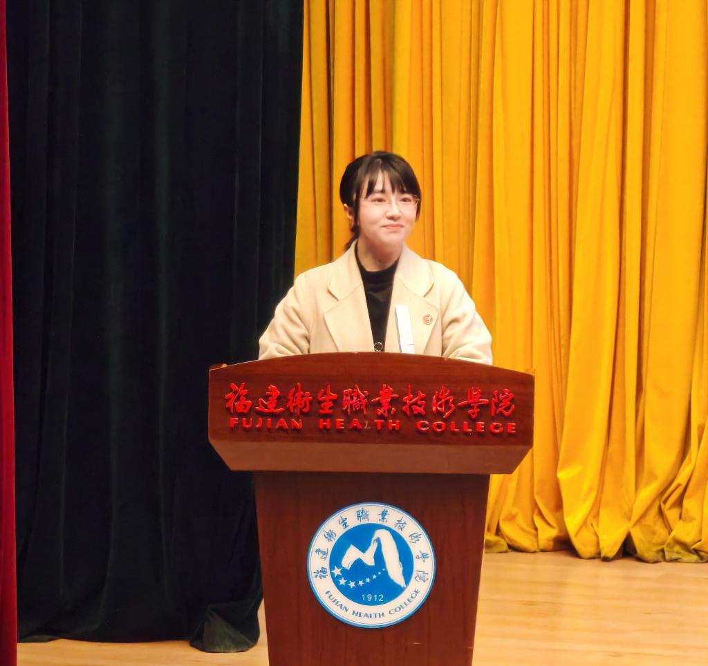 2025级医学检验专业学生蔡惠超作为新生代表发言。他回顾了中专阶段在母校打下的专业基础,并呼吁全体新生既要深耕医学理论知识,更要锤炼实践操作能力,在协同共进中传承医者仁心。