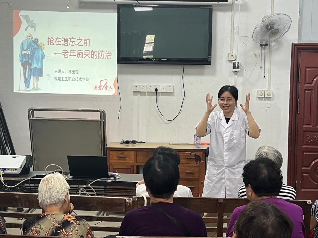 课上,医学院教师第二党支部教师林玉琼结合多年研究,为居民们带来一堂极具指导意义的精彩课程“多科联动,抢在遗忘之前——老年痴呆的防治”,居民们听得聚精会神,课堂上讨论热烈,学习氛围浓厚。