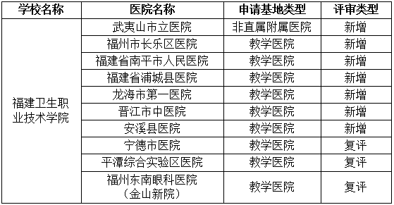 福建省卫健委、福建省教育厅认定公布学院10 家临床教学基地一览表