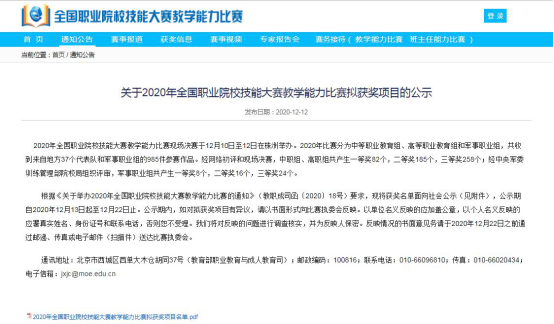12月12日,2020年全国职业院校技能大赛教学能力比赛现场决赛在湖南株洲市圆满结束。我校护理学院洪霞教学团队和药学院陈钰教学团队分获全国职业院校教学能力比赛二等奖和三等奖。