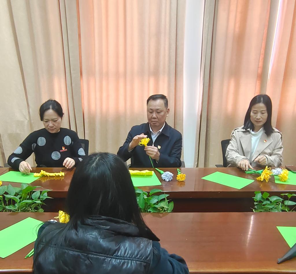 苍松翠柏掩映下,110座烈士墓静默矗立,斑驳的碑文铭刻着1949年福州战役的壮烈史诗。活动伊始,大家围坐成圆,将素白卡纸裁作八瓣雏形。随着对角翻折、塑形固瓣、细捻花蕊等工序有序推进,百余朵手工纸菊渐次绽放,“革命理想高于天”的信念教育具象化为可触可感的仪式载体。