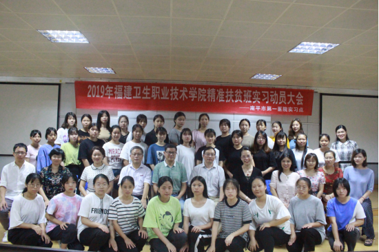 我院中职护理专业精准扶贫班在省教育厅和南平市政府的高度重视和大力支持下,在南平市政协、市扶贫开发协会、市妇联和市慈善总会以及福建瑞泉护理服务有限公司的全力配合下,目前已顺利完成两年在校学习生活。7月15日起,精准扶贫班将进行为期40周的实习。为提高学生实习积极性,明确实习目的和意义,为今后工作打下坚实基础,我院陈贞健副院长、郑翠红副院长带队赴南平九0七医院、南平市一医院参加中职护理专业精准扶贫实习动员大会,随行的还有教务处朱扶蓉处长、护理系谢涛书记、教务处梁艳副处长。