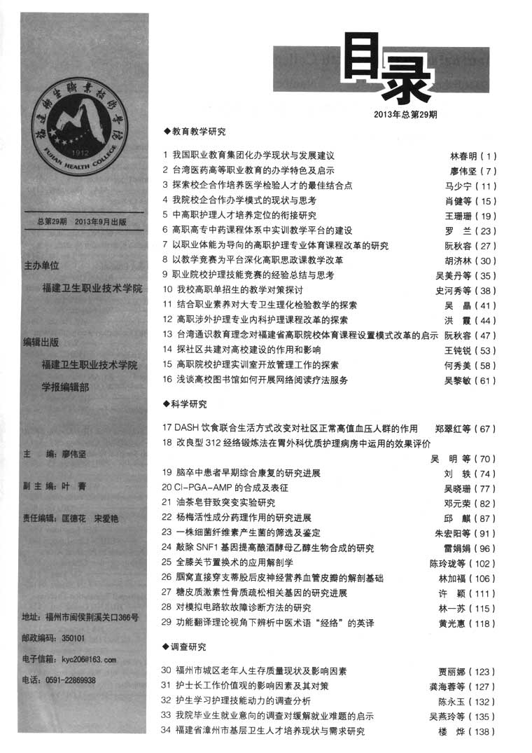 福建卫生职业技术学院学报2013年总第二十九期 目录
