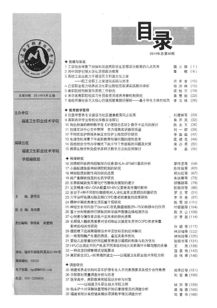 福建卫生职业技术学院学报2014年总第三十期 目录