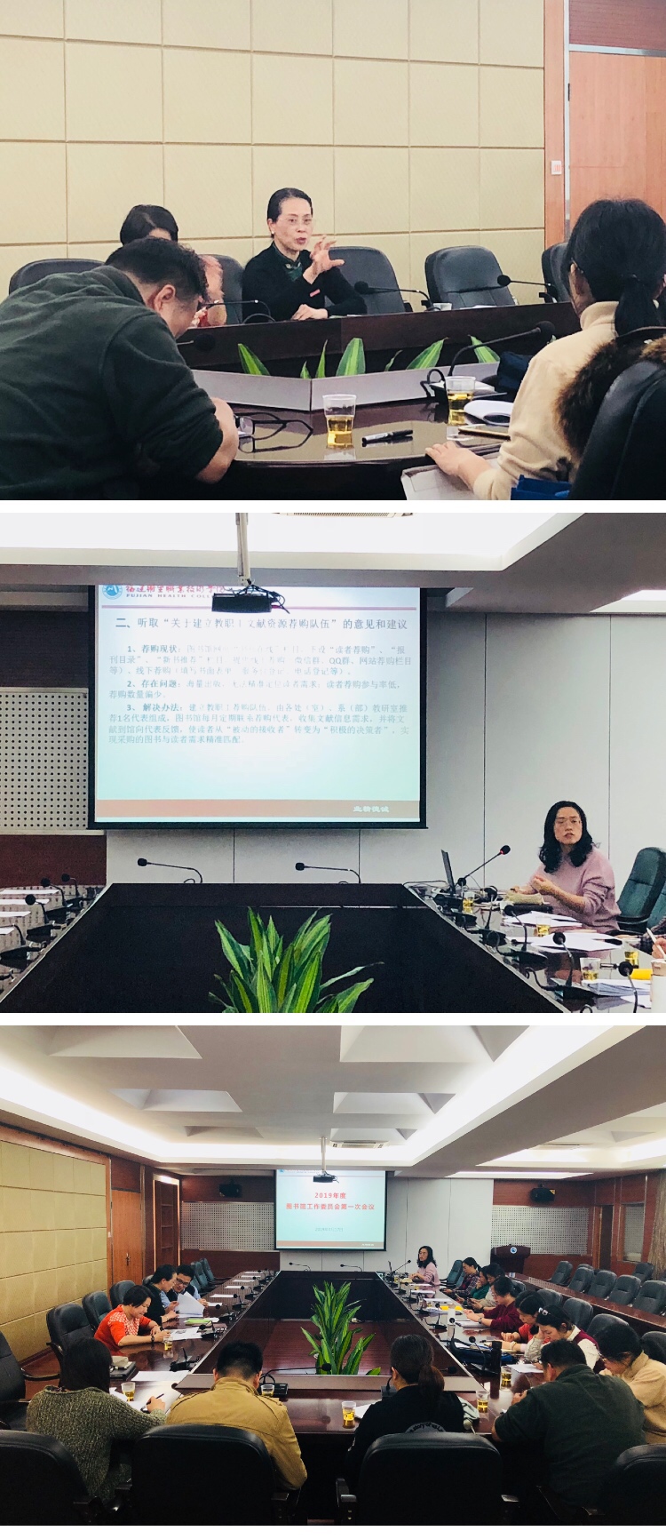 与会委员举手表决全票通过《福建卫生职业技术学院图书馆工作委员会章程(审议稿)》,并就《建立教职工文献资源荐购队伍的问题》、《关于图书馆利用“AMLC学术不端科研人事检测系统”向教职工提供论文查重检测服务的问题》展开研讨,充分交流,提出了建设性的意见和建议。
