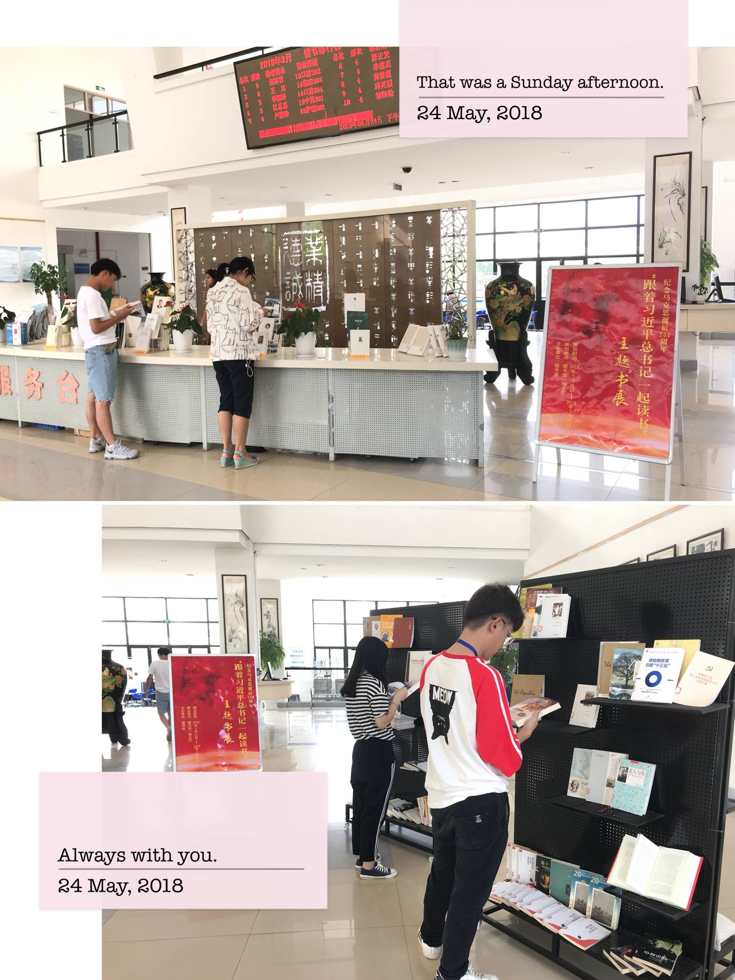 在本次活动中,我馆共精选37种主题图书和52种其他社科类畅销图书共200余册向同学们展出,通过总服务台小展架和落地大展板进行合理摆放。书展现场陆续吸引了师生读者们的目光,他们随手取阅展架上的图书,有的驻足翻看,有的则直接取走架上图书办理借阅。