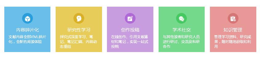CNKI研究型协同学习平台(ECSP)是以全新的文献学习和利用方式,将文献服务、知识服务嵌入科学研究与业务学习,可实现在线浏览、下载文献、阅读笔记、在线编辑、创作投稿等功能的知识管理平台,助力个人探究式移动学习,帮助构建个人知识结构,实现知识创新。