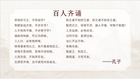 活动接近尾声,由主持人领读《论语》中的原著金句,并现场教学剧中出现的礼仪手势——“叉手礼”,让同学们体会到传统文化的魅力,也更加加深了对孔子这位“至圣先师”的理解。