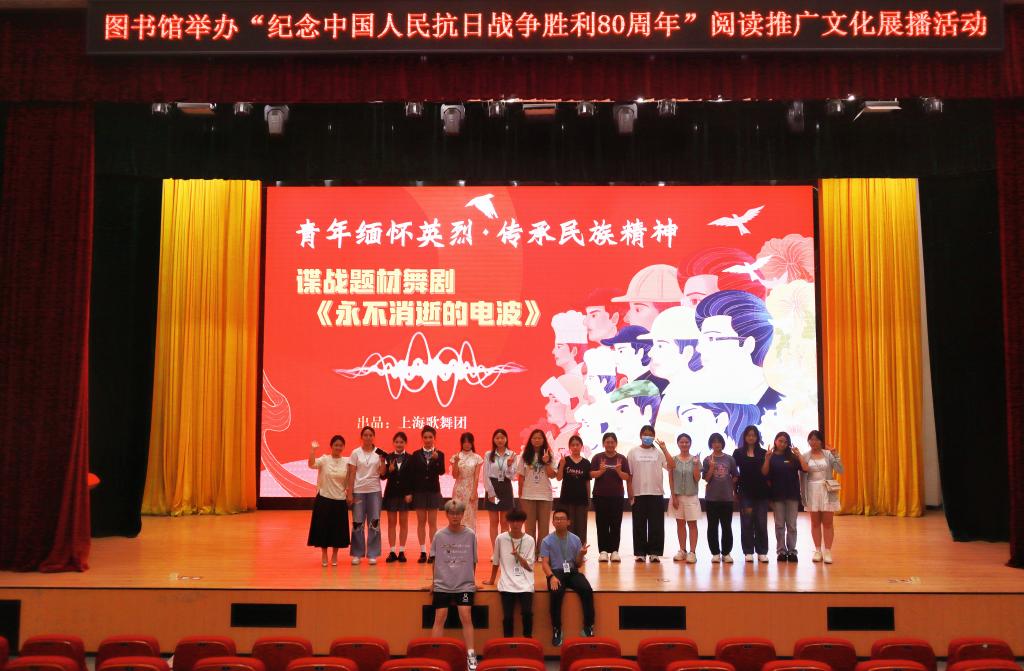 世界名人名著经典戏剧展播活动·第2期“纪念中国人民抗日战争胜利80周年”——谍战题材舞剧《永不消逝的电波》圆满结束!未来,图书馆将精心选取世界各地国家级剧院经典戏剧佳作、国内各地省级剧院口碑戏剧佳作,计划定期进行展播,引领我校学子共同领略世界名人名著文化瑰宝的魅力,为广大学生群体树立积极健康的价值观,进一步落实图书馆文化育人的职能。