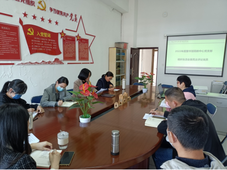 2023年3月7日,图书馆现教中心党支部在图书馆会议室召开2022年度组织生活会暨民主评议党员。会议由党支部书记宋爱艳主持,院直机关党总支陈盛兰列席,支部全体党员到会。