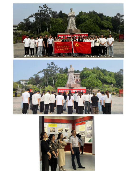 在活动现场,党员们面向林祥谦烈士雕像庄重肃立,鞠躬默哀,缅怀革命先烈,默哀之后支部党员从左到右绕林祥谦烈士雕像一周,瞻仰烈士雕像,共同追思工人运动先驱的英勇事迹,感受着先烈们英勇无畏、为国捐躯的壮烈情怀,接受革命传统精神洗礼。
