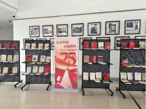 图书馆现教中心党支部举办“献礼国庆75周年”主题书展”
