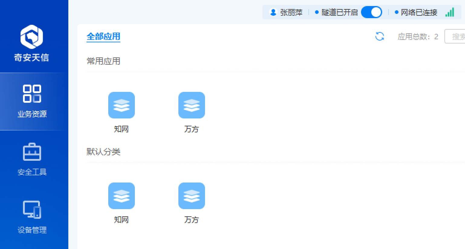 3.打开“奇安天信”客户端,会自动打开浏览器,正常登录,提示“认证成功”,代表成功链接,即可从VPN端口进入数据库;