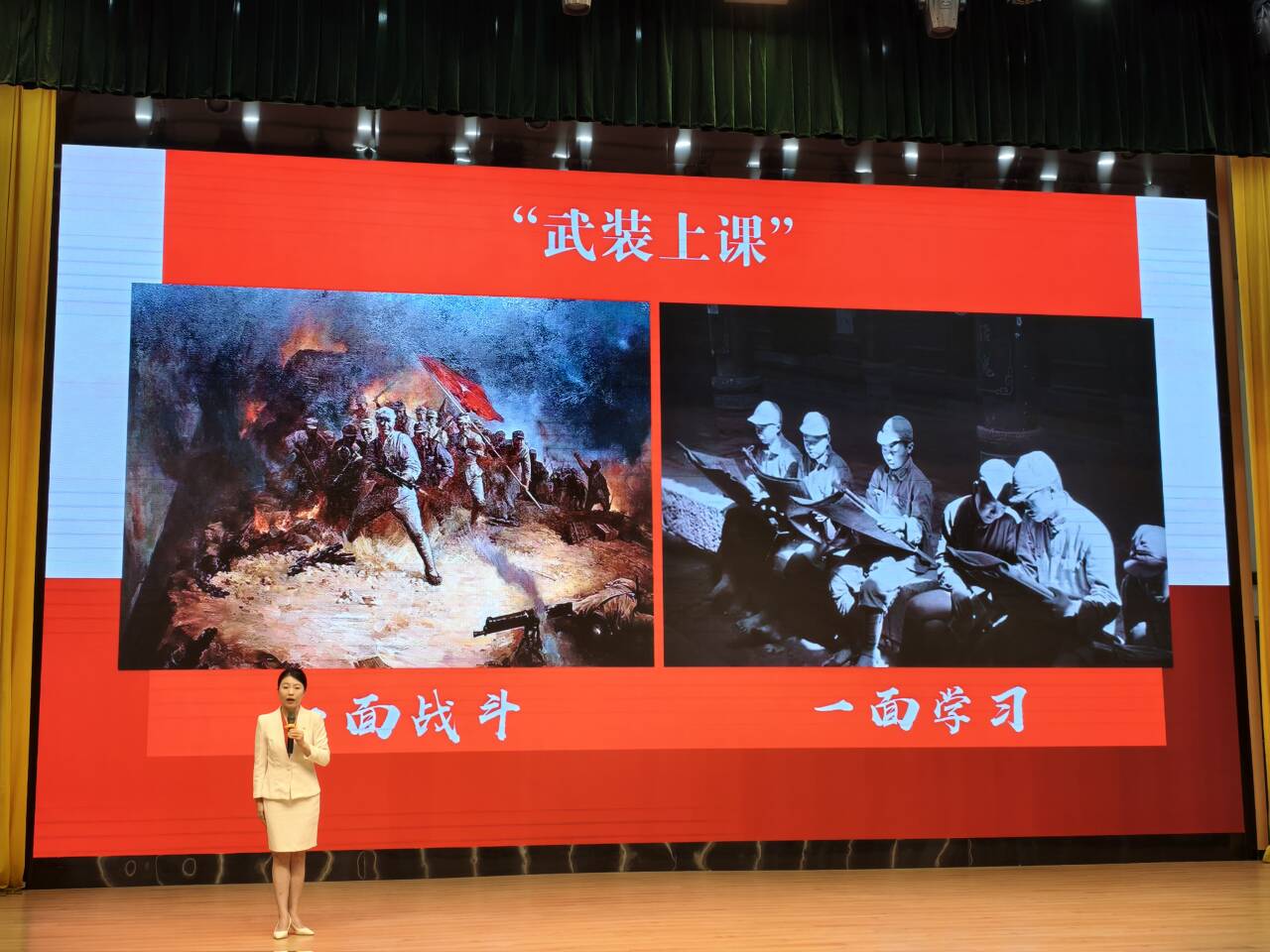我校作为拥有百年深厚历史底蕴和鲜明卫生健康特色的高校,涌现出高胡、陈海峰、刘景业、石益、陶平等众多革命先驱与红医典范。历史既承载着过往的峥嵘,更启迪着未来的征程。在场青年学子踊跃参与抗战历史知识竞答,以一道道题目为“钥”,唤醒沉睡的烽火记忆;在知识的交锋碰撞中,伟大抗战精神跨越时空,于薪火相传中焕发新的光芒。
