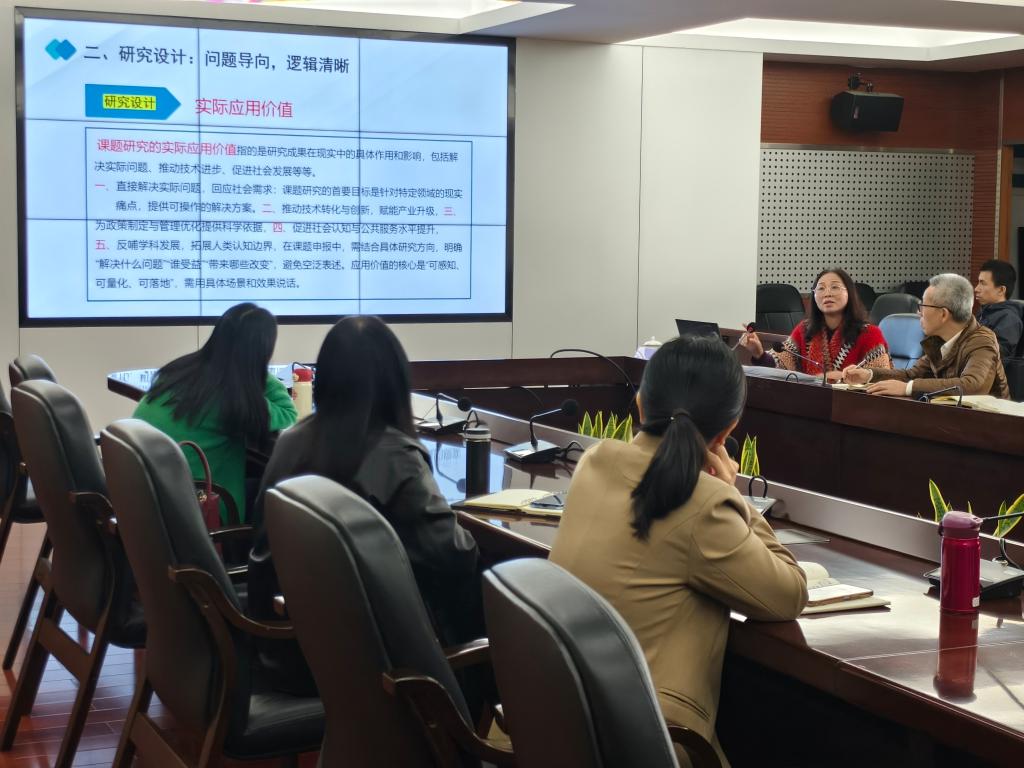 讲座中,陈育钦立足多年科研申报指导经验与往年中标典型案例,围绕教育部思政专项课题申报核心要点,从选题、研究设计、团队组建、材料撰写及关键注意事项五大模块展开系统讲解与深度剖析。在选题环节,她指出要紧扣中央及教育部最新政策文件、年度思政工作要点,精准把握时代热点,同时结合自身研究基础找准差异化切入点,聚焦高校思政工作中的“真问题”避免空泛化研究。同时,她结合申报书规范要求,详细拆解各部分撰写技巧。她还特别提醒参会教师,思政专项课题申报需严守政治方向,确保研究内容符合主流意识形态,贴合年度评审热点,要避免“重理论轻实践”,强化成果的应用价值与可推广性,并提前3-6个月筹备申报工作,预留充足修改时间,邀请同行专家预评审以优化完善申报材料。