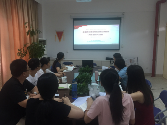 2019年9月27日下午2点30分,根据《教育部办公厅关于开展全国高校思想政治理论课教师“周末理论大讲堂”活动的通知要求》,马克思主义学院全体专兼职教师等31人,通过集中学习和各自学习的模式观看周末理论大讲堂第十六讲的网络直播,继续学习马克思主义相关理论著作和习近平新时代中国特色社会主义思想。