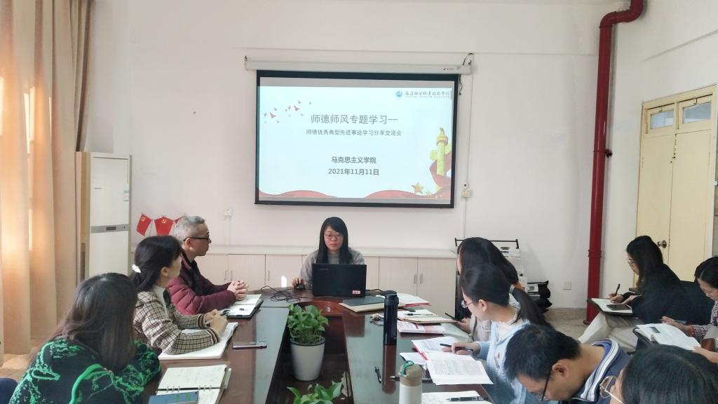 为全面贯彻习近平总书记关于教育的重要论述和全国职业教育大会精神,加强和改进新时代师德师风建设,2021年11月11日上午,马克思主义学院在107会议室开展师德师风专题学习,学习活动由马克思主义学院院长熊美兰主持,马克思主义学院全体教师出席。
