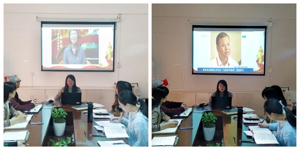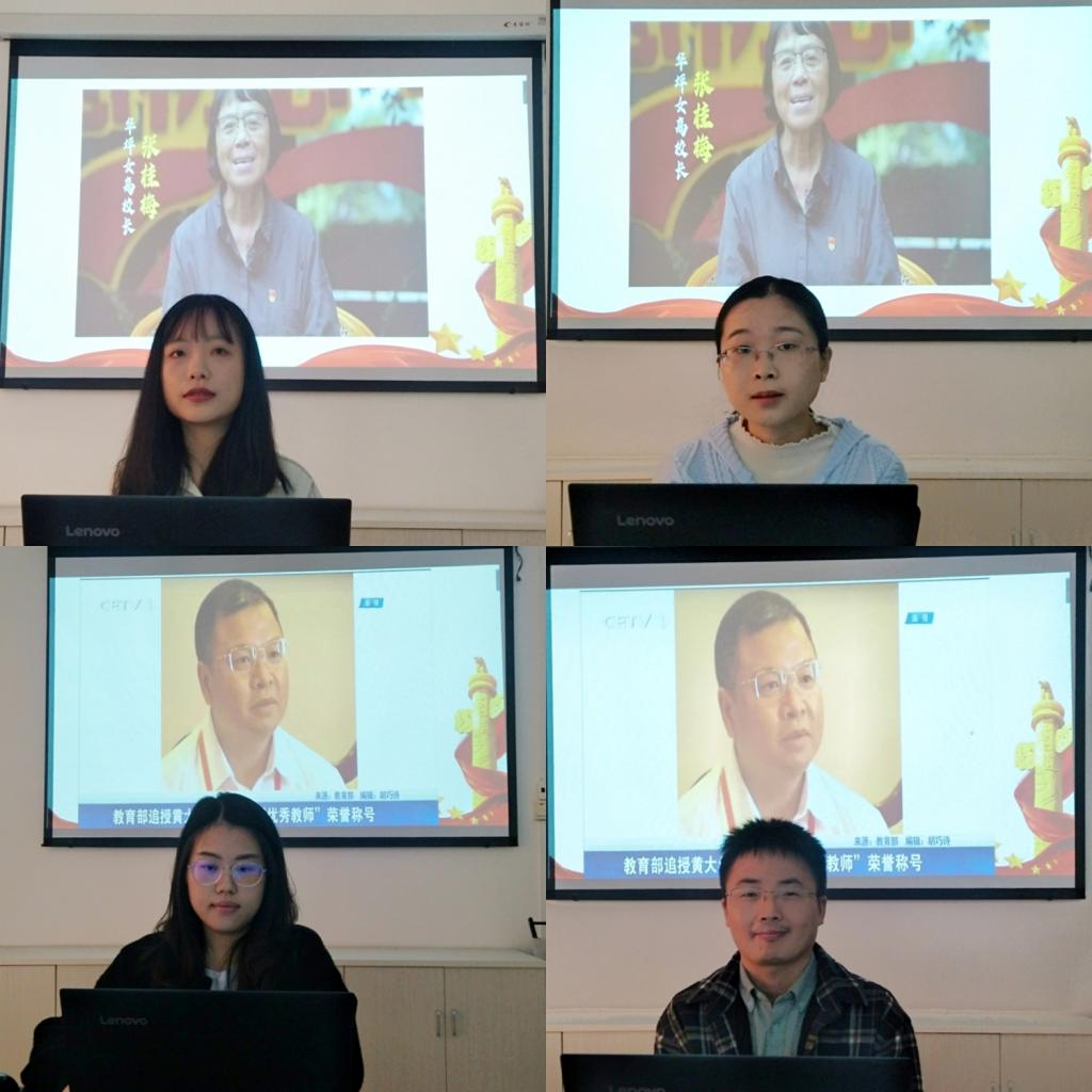 在观看学习“时代楷模”张桂梅、黄大年的师德优秀典型先进事迹后,教师张晨琳、杨央、朱丽燊、王康分别分享了学习心得。