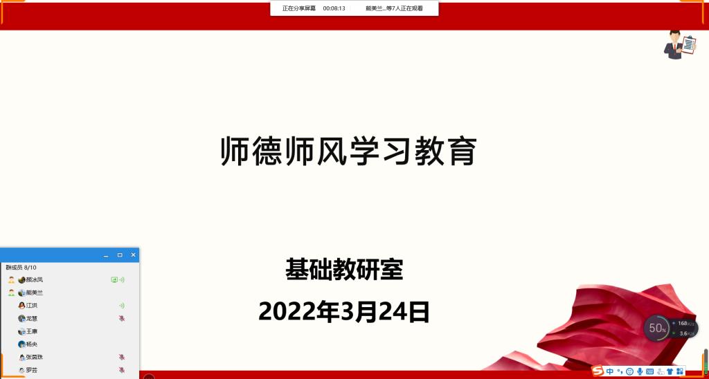 2022年3月24日上午,马克思主义学院基础教研室通过QQ群线上开展师德师风学习教育活动。活动由基础教研室主任颜冰凤主持,教研室全体老师参加了活动。