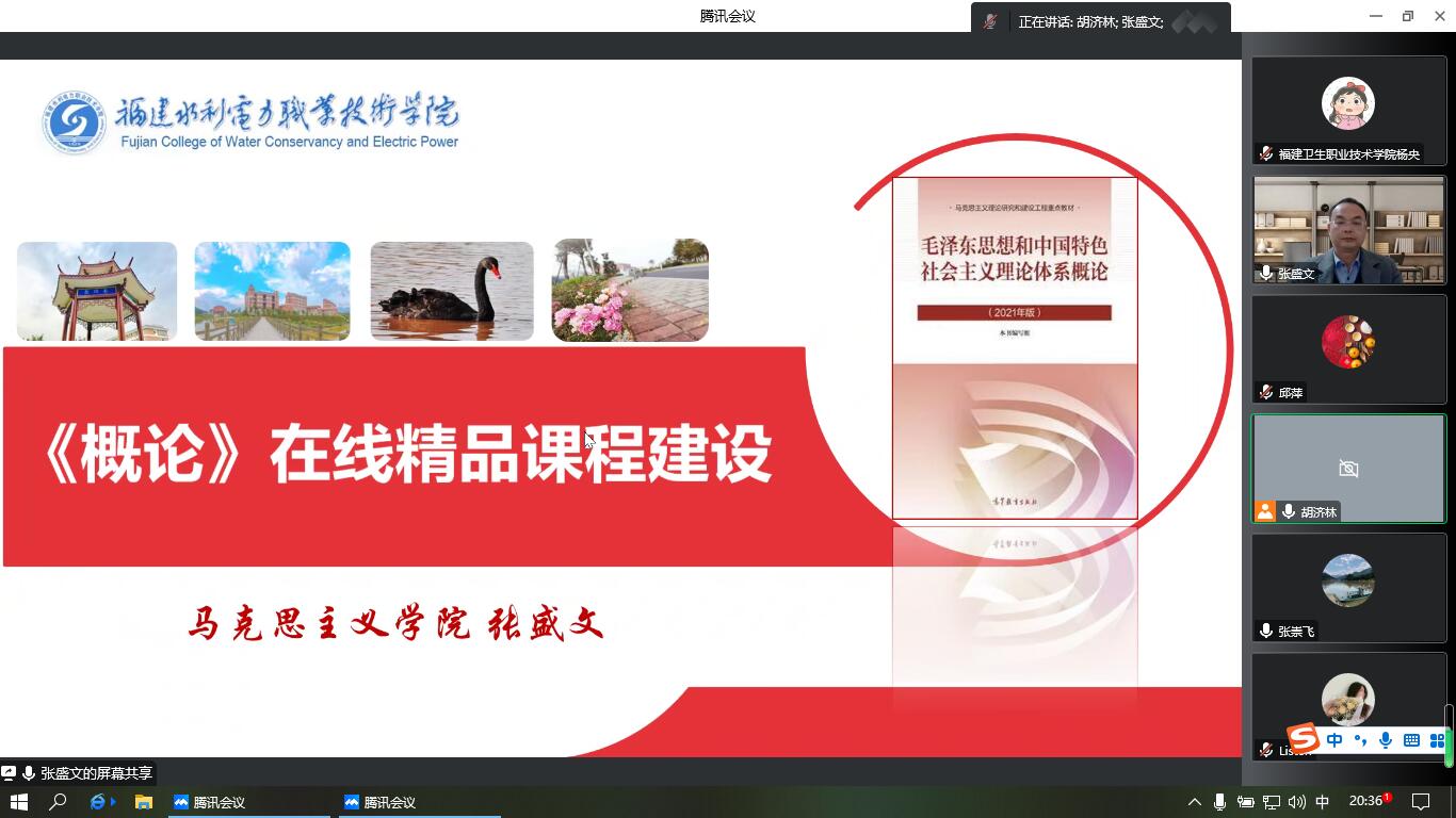 为推进我校《毛泽东思想和中国特色社会主义理论体系概论》精品在线开放课程建设,2022年12月18日傍晚,马克思主义学院习近平新时代中国特色社会主义思想概论教研室通过腾讯会议,组织开展精品在线开放课程建设研讨会。本次研讨会特邀福建水利电力职业技术学院马克思主义学院院长张盛文教授为大家做经验分享与课程建设指导。校教师教学培训师、概论教研室主任胡济林主持会议,课程组全体教师参加会议。