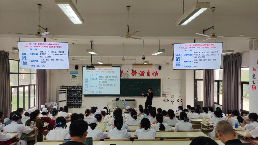 刘宗永老师的授课内容是“毛泽东思想和中国特色社会主义理论体系概论”课程中的“‘三个代表’重要思想”。刘宗永以理论创立者生平简介进行导入,清晰阐明了“三个代表”重要思想形成发展的社会历史条件,深刻解析了“三个代表”重要思想的核心观点和主要内容。听课教师一致认为刘宗永声音洪亮,备课充分,讲授形象生动、授课逻辑性清晰,与学生互动良好。此外,听课教师建议采取更加有效的信息化手段提高课堂参与度,充分调动学生对于教学内容的兴趣,授课过程中语调较为平缓,需注意调整。