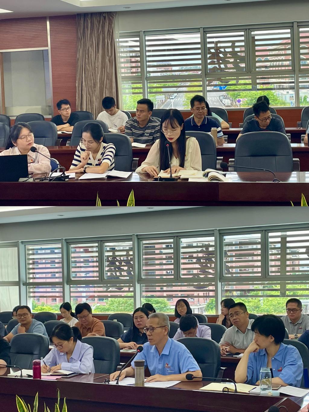 校领导分别对两门课程的集备展示给予精准点评,充分肯定了本次集体备课成效,并就教学结构、选用案例素材、教学语言等方面提出建设性意见。许能锋表示,思政课教师使命在肩、责任重大,对教学案例的把握应当准确、全面、客观,通过教学案例将思政课讲准、讲深、讲透、讲活,从而给予学生正向引导与激励。曾武祈传达了省委常委、宣传部部长张彦在省委教育工委、省教育厅主办的“党的二十届三中全会精神融入‘习近平新时代中国特色社会主义思想概论’课程集体备课会”上的重要讲话精神,提出思政课不仅是传授知识的过程,更是引导学生树立正确价值观的关键环节,思政课建设永远在路上。思政教师要在教学实践中紧跟党中央、省委的重大决策部署,有机结合国内外政治热点和学生兴趣点,为培养德技并修、业精德诚高素质技能人才作出贡献。