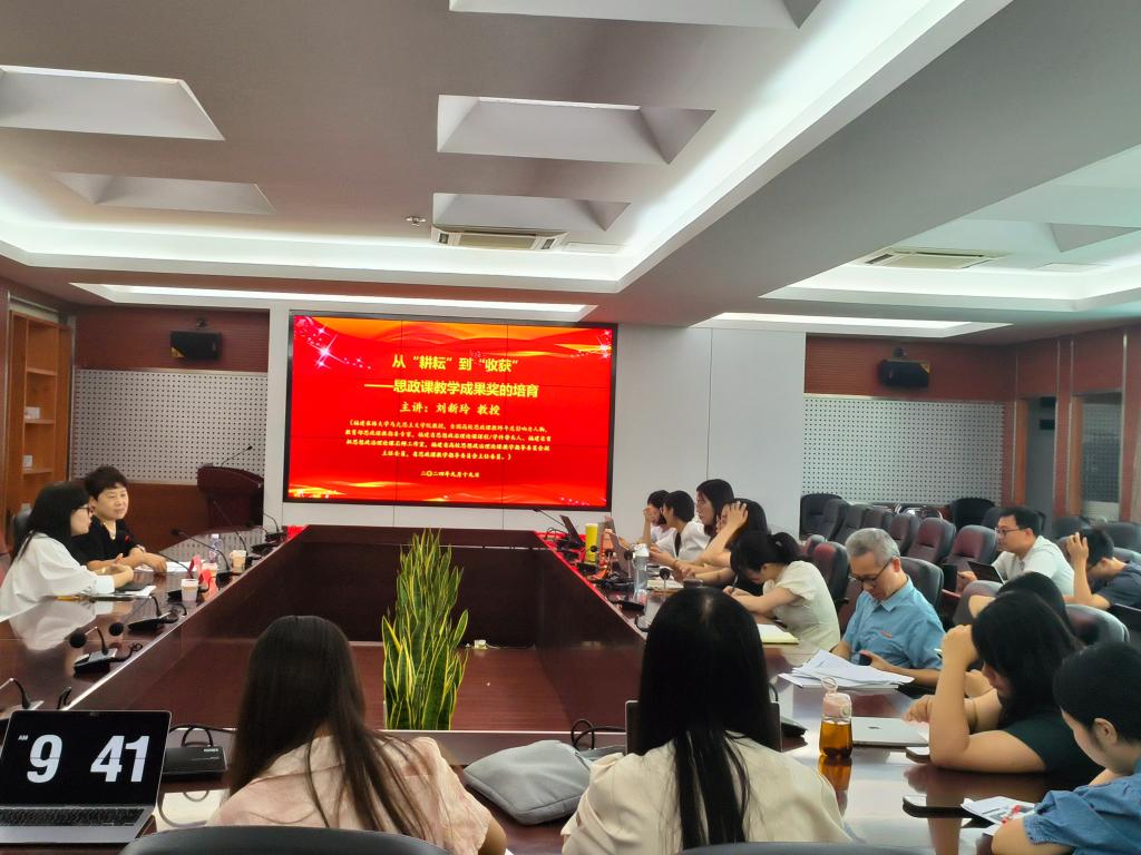 为贯彻落实习近平总书记关于思政课建设的重要论述,持续打好提高思政课质量和水平的攻坚战,进一步提炼我校近年来思政课取得的丰硕成果,塑造教育品牌,激发全体思政课教师投身教育教学研究热情,强化思政课教学成果奖培育,2024年9月19日,我校邀请福建农林大学刘新玲教授在厚德楼四楼会议室作题为《从“耕耘”到“收获”——思政课教学成果奖的培育》专题讲座。讲座由马克思主义学院院长熊美兰主持,全体专兼课思政教师参加。