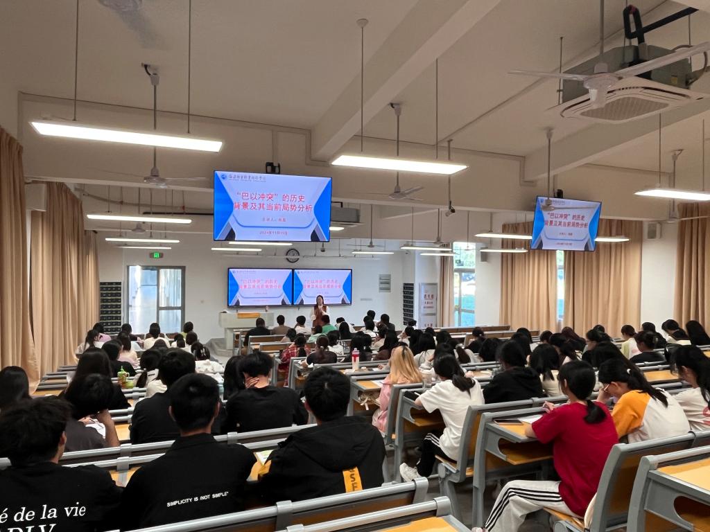 当前国际的安全形势仍然是以和平为主旋律,局部动荡并存,其中在局部战争中,新一轮的“巴以冲突”已经进入第二个年头。为了引导学生正确认识当前国际安全形势,特别是从局部的动荡现实中深刻感悟到我国提倡大国协商合作,构建人类命运共同体外交政策和理念的实质与时代意义。2024年11月15日,杨盈老师在医学院医基三阶梯教室,为师生代表作题为《“巴以冲突”的历史背景及其当前局势分析》的专题讲座。