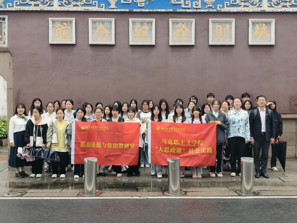 为增强“思想道德与法治”课的实践性,丰富“思想道德与法治”课教学内容,加强清廉文化学习教育,2025年4月24日,福建卫生职业技术学院马克思主义学院思想道德与法治教研室江洪、龙慧、颜冰凤三位指导老师带领24级药品经营与管理301、302班共40余名学生前往福州市三坊七巷林则徐纪念馆开展思政实践活动。