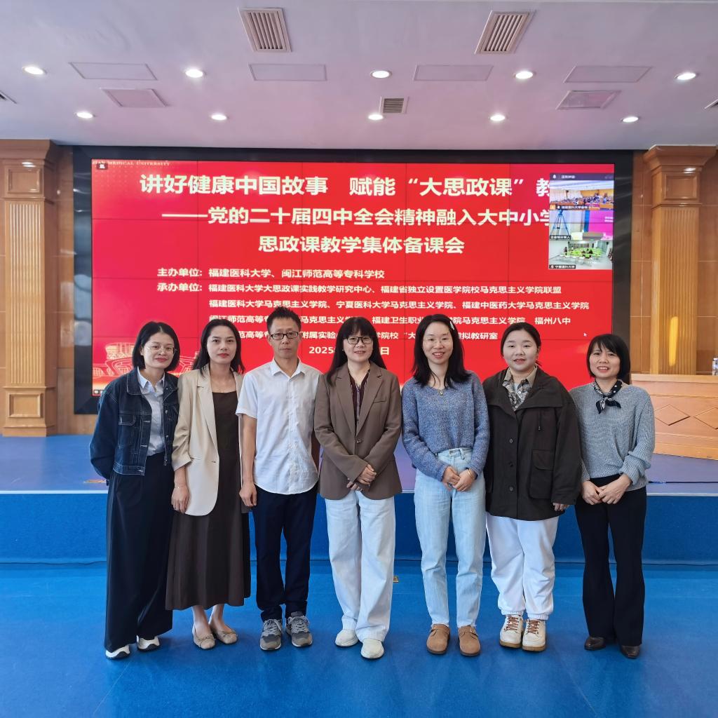 2025年11月14日,为深入学习贯彻党的二十届四中全会精神,帮助学生深刻认识推进健康中国建设的重大意义,扎实推进大中小学思政课一体化教育教学改革创新,凝聚跨学段教研共识,推动学校思政课建设的高质量发展,培养担当民族复兴重任的时代新人,我校马克思主义学院党总支书记、院长熊美兰一行参加由福建医科大学马克思主义学院主办,我校马院承办的“党的二十届四中全会精神融入大中小学思政课教学”集体备课会。