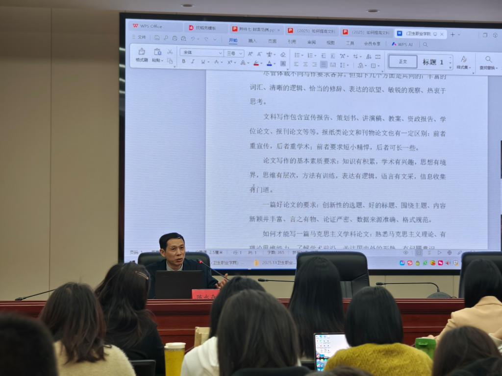 马克思主义学院开展《人类卫生健康共同体的生成逻辑与实现路径研究——如何写一篇符合核心刊物要求的好论文》专题讲座