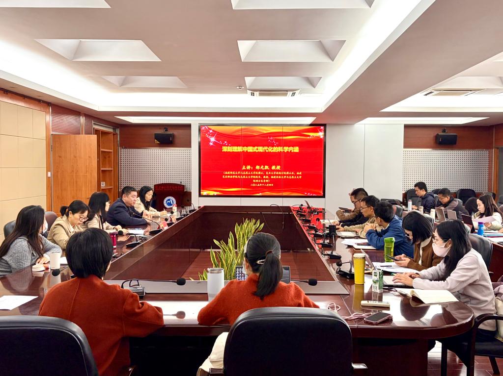 为深入学习贯彻党的二十届四中全会精神,帮助广大师生进一步理解中国式现代化的超越性意义,12月4日,我校特别邀请福建艺术职业学院马克思主义学院院长、福建农林大学硕士生导师郑元凯教授,开展题为《深刻理解中国式现代化的科学内涵》的专题讲座。讲座由马克思主义学院院长熊美兰主持,马克思主义学院全体专兼课教师参加。
