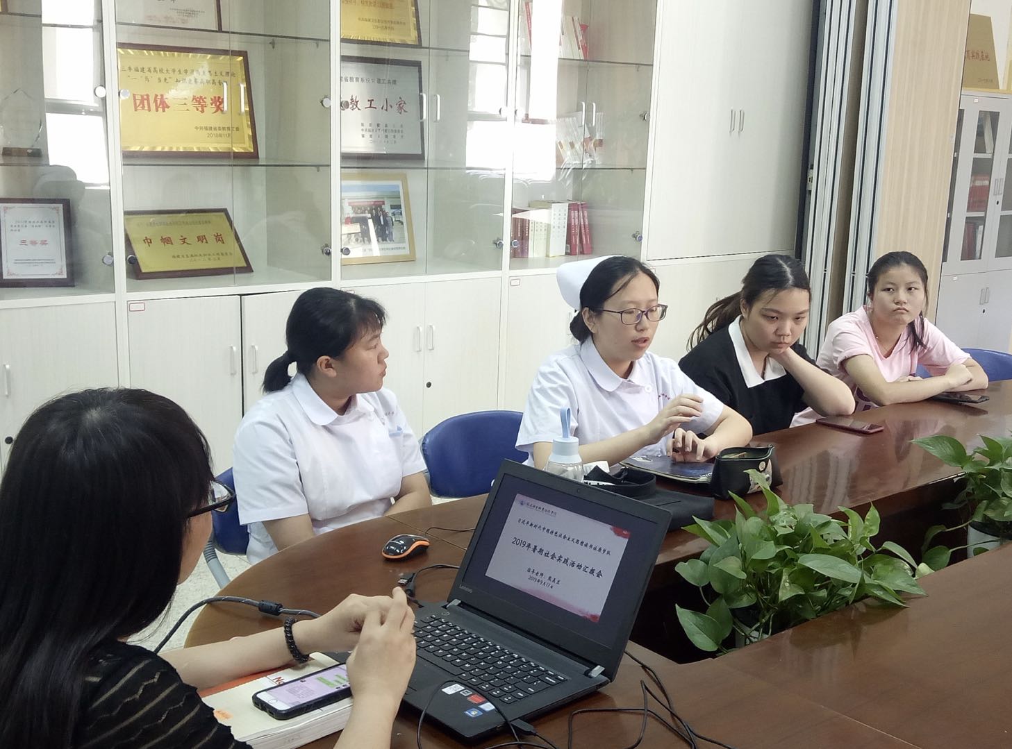 陈潇颖、林娴静、林秀平、林幼娟、苏欣玫等成员分别交流了以医院、社区卫生所的义诊、见习和志愿服务中的感悟与收获。最后,熊美兰老师对同学们的发言表示很欣慰,暑期实践活动告诉我们大学生应该走出象牙塔,身体力行,磨砺意志,完善人格,播撒爱心,励志践行。社会实践活动不仅锻炼了我们社会实践的能力,培养了我们独立处事的判断力。本次实践交流会,重温了师生们过去不久的快乐锻炼,更是让我们深深地体会到了爱与关怀,团结与坚持的可贵。