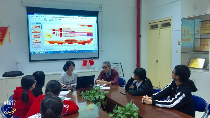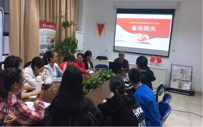 本次专题学习主要围绕新中国成立70周年以及暑期“三下乡”社会实践活动的心得体会来展开。首先由胡济林老师以新中国成立70周年为主题进行专题学习,胡老师介绍了国庆的来历、新中国成立70周年的大事记、国庆大典概况、举办国庆大典的重大意义等。胡老师指出,这次国庆大典是在第一个百年即将到来之际,全党全军全国各族人民万众一心,朝着全面建成小康社会目标奋进的一次伟力凝聚;是在实现中华民族伟大复兴中国梦的征程上,全体中华儿女对共同理想所作的一次豪迈宣示;是在当今世界正经历百年未有之大变局的形势下,中华人民共和国始终巍然屹立于世界东方,并且愈发蓬勃、愈发健强的一次盛大亮相。接着由钟程雅同学讲解新中国成立70周年的历史和现在的辉煌成就、青春队的小队长李昱同学汇报读书社的暑期“三下乡”社会实践活动情况和体会。