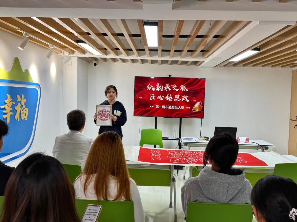 为深入贯彻落实“两个结合”重要论述,推动中华优秀传统文化创造性转化、创新性发展,将思政教育融入文化育人实践,2025年12月11日下午,由我校马克思主义学院指导、DIY社团主办的“纸韵承文脉,匠心传思政”非遗剪纸大赛决赛,在一站式社区匠心驿站成功举行。活动特邀福建省剪纸协会副会长潘力鹰女士担任主讲嘉宾与决赛评委,本次活动旨在推动非遗技艺的传承与马克思主义学院“大思政课”的育人目标的深度融合。