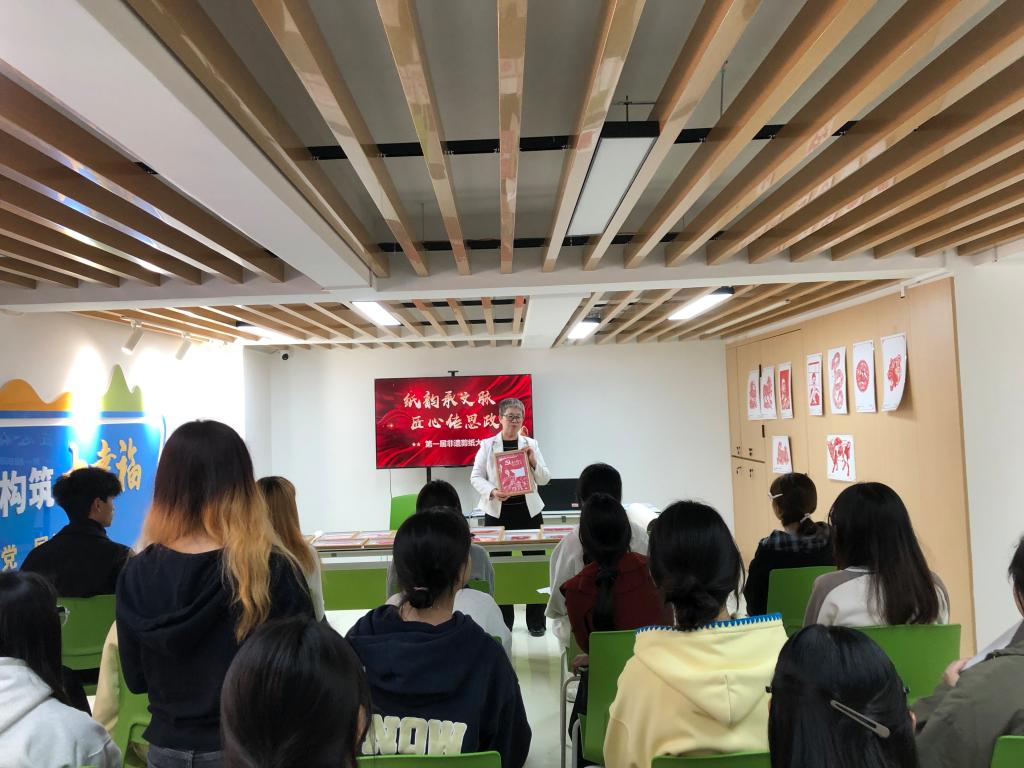 活动伊始,潘力鹰为现场师生带来了题为《中国民间剪纸的文化心理内涵与民族精神》的精彩讲座。她首先从非遗剪纸的文化定位出发,阐释了其作为中华文明活态传承的重要载体地位。随后,她结合丰富的剪纸作品深入剖析了剪纸作为集体潜意识情感表达的独特方式,指出其纹样符号中蕴含着人民群众对美好生活的向往、对自然的敬畏及对伦理秩序的遵循,这正是马克思主义唯物史观中“人民群众是历史创造者”的生动文化例证。潘会长进一步阐明,剪纸艺术是民族精神的形象化载体,方寸之间凝聚着自强不息、和谐共生、祈福纳祥等中华民族的核心精神特质,与社会主义核心价值观一脉相承。最后,她强调了剪纸在当代守护民族文化基因、坚定文化自信方面不可替代的价值,为同学们上了一堂深刻而鲜活的“文化自信”思政课。
